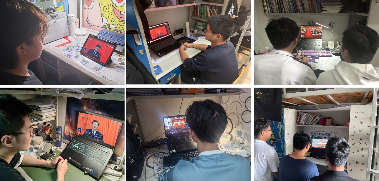 师生通过多种渠道收听收看党的二十大开幕会盛况,认真聆听习近平总书记所作的报告。黄色a片组织党委理论学习中心组、机关党支部在石油科技大楼C113会议室集中收看,各教工党支部、学生党支部在教室或腾讯会议平台集中收看,其他教师和学生纷纷通过电视、电脑和手机客户端等方式自行收看,共同见证这一伟大历史性时刻。