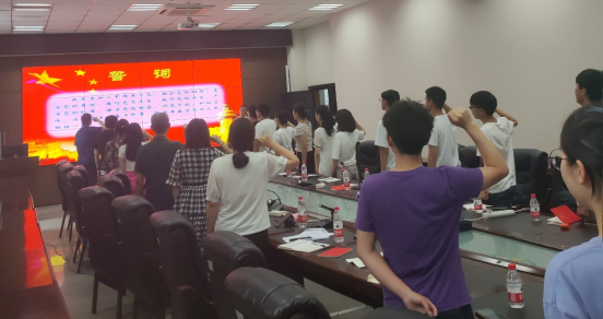 然后,全体党员在领誓人龙远的带领下重温入党誓词,并庄严宣誓。毕业生党员在毕业临行前重温入党誓词,真挚铿锵,激扬回荡。以此激励毕业生党员坚守初心,砥砺奋斗,更好地服务社会。