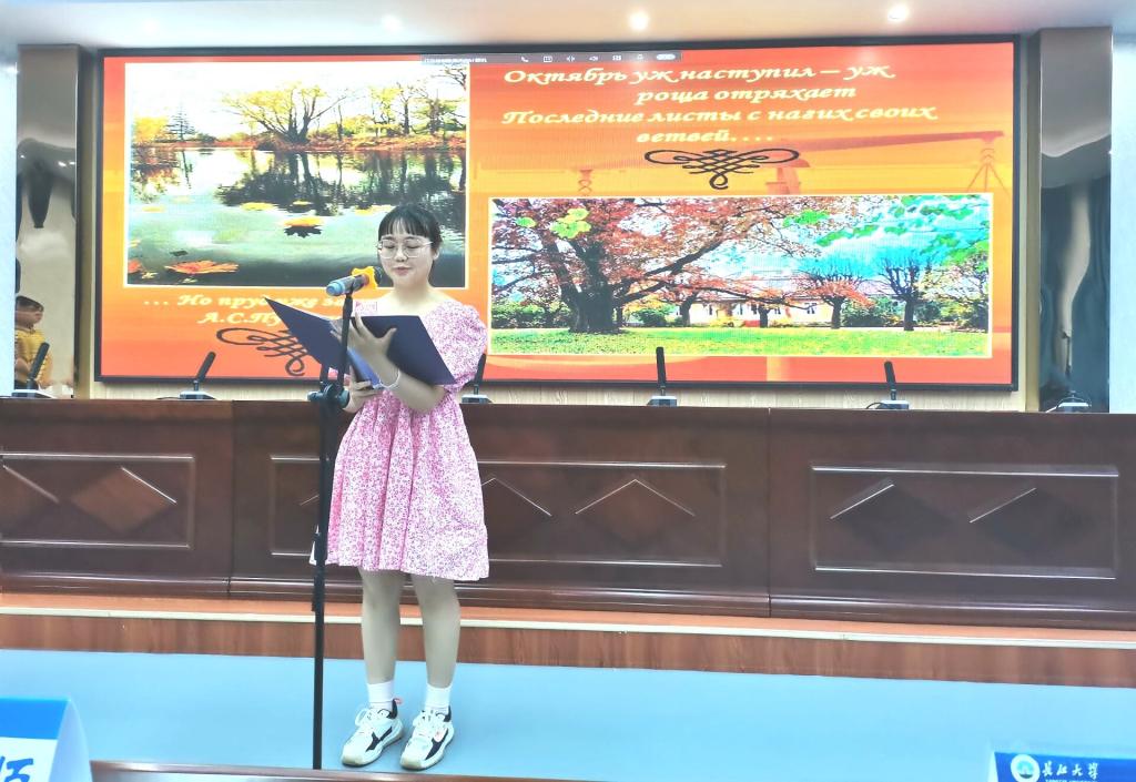 晚会在张引弟副院长的开场白中拉开了序幕。她指出在中国的传统佳节端午节当天,用一场俄语诗歌晚会不但检验了同学们前期学习俄语的效果,而且在中国的传统佳节与外教一起共度佳节并体会俄罗斯优美的诗歌精华,让两国的传统文化通过国际化交流这样一条通道无缝对接,显得弥足珍贵。该活动能更好地丰富我们的校园生活,学习俄语语言的同时也领略了俄罗斯文化,一方面实现了中外文化交流融合;另一方面实现了不同地域、不同民族的教学融合。以国际化的视野,讲了中国故事,弘扬了优秀传统文化,也吸收了国外优秀文化。随后她祝大家端午安康,预祝活动圆满成功。