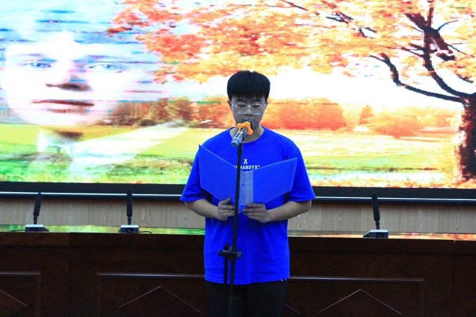 随后,油工中俄郝瀚翔同学朗诵了一首叶赛宁的诗歌《不惋惜,不呼唤,我也不啼哭》,为在场的同学带来了一场激情澎湃的朗诵。接下来,主持人通过幻灯片展示了不同时期的叶赛宁肖像,并播放了一段纪录片,展现了其在不同阶段的思想和追求,希望通过这个纪录片鼓励我们勇敢追求自己心中所想,勇敢追求幸福与爱情生活。