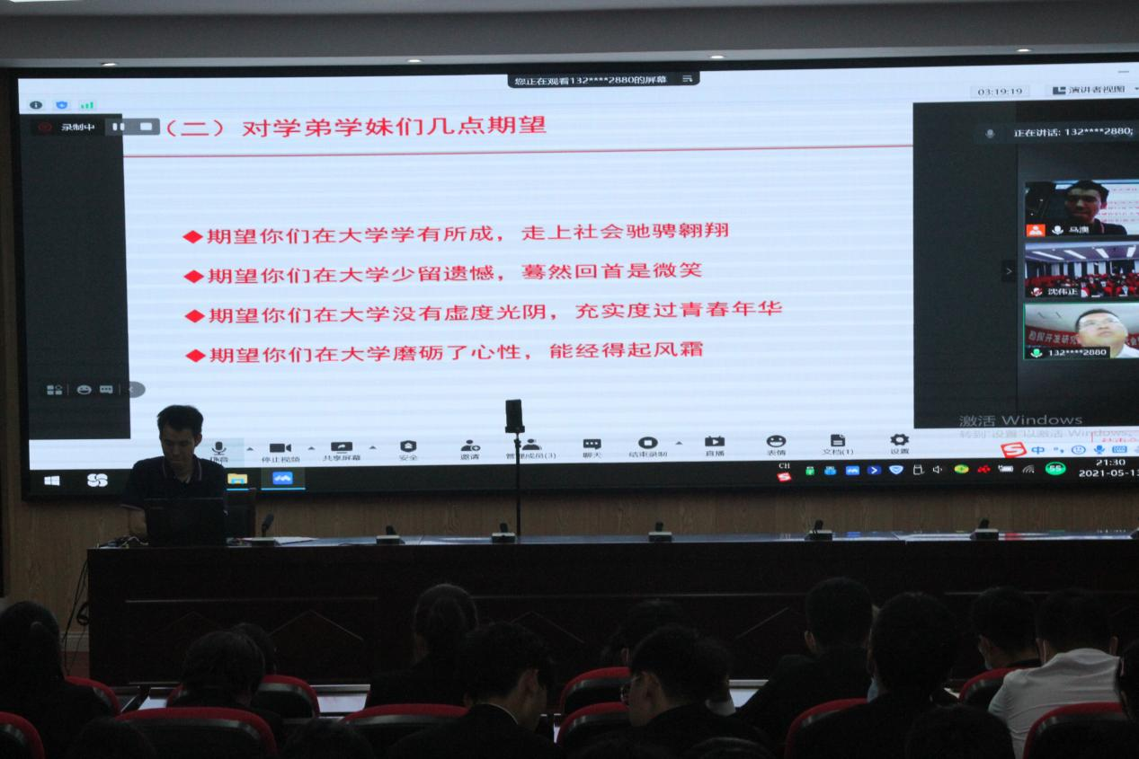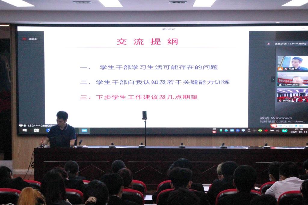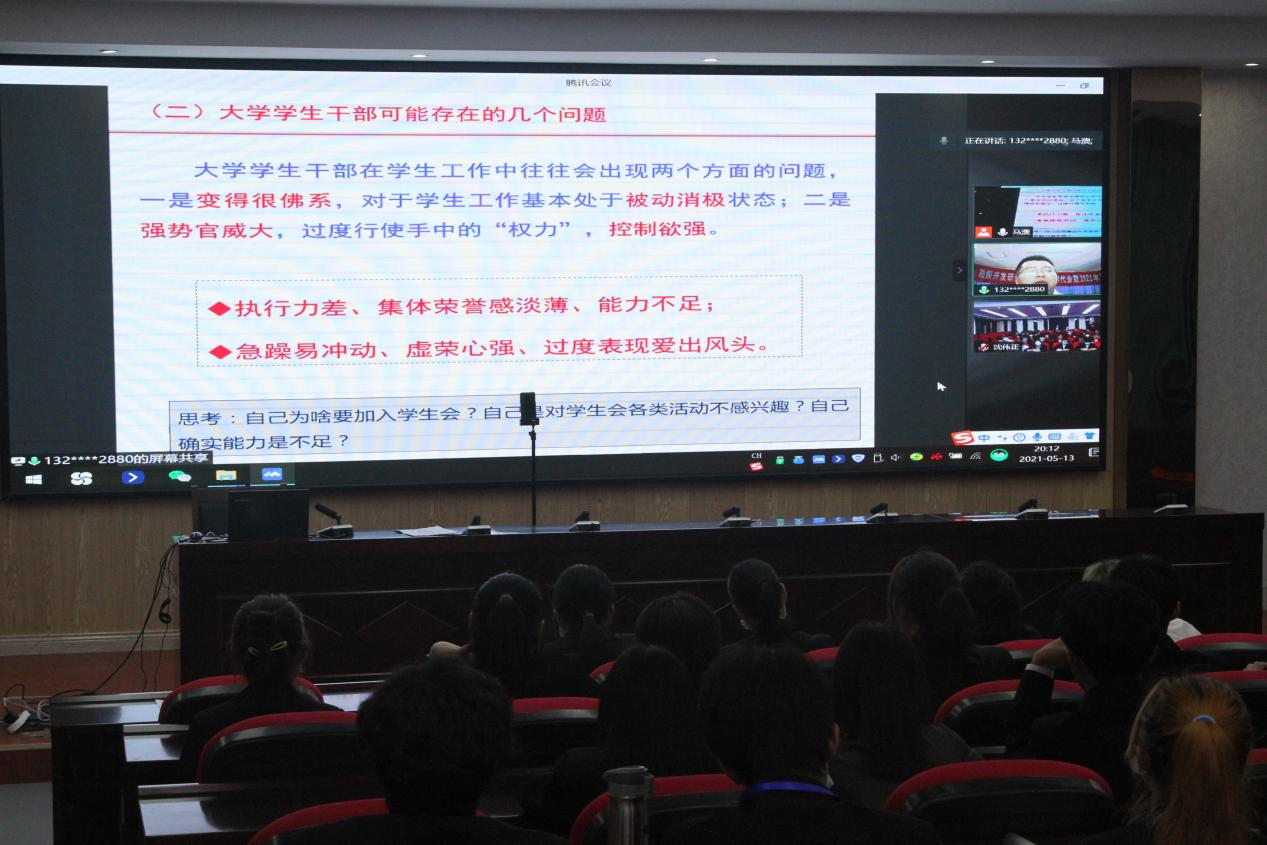 第十八届团委学生带来线上报告会——提高学生干部综合能力几点思考,报告会由团委书记沈伟正老师主持。