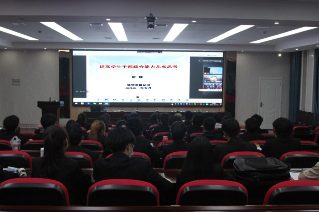 校友舒坤认为当代大学学生干部普遍存在执行力差、集体荣誉感淡薄、能力不足等问题,并针对以上问题提出了学生干部应该具备的若干关键能力:公众表达力、目标与计划管理、高校执行力、优化决策行为、权变领导理论、复盘能力训练、优秀学生干部习惯养成等七个方面,报告内容全面丰富、理论观念新颖、针对性强,赢得了团委学生会干部的阵阵掌声。